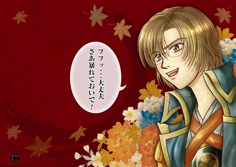 徳川家康「フフッ・・・大丈夫。さあ暴れておいで!」 トップページイラストに、元になったセリフを入れたものです。本陣が手薄になるけど大丈夫か、という清正さんの問いに対したもの。 このあと敵軍を本陣におびきよせたりするんだから、たまりませんでした(笑)もー総長っ、好きっす!! Tweet