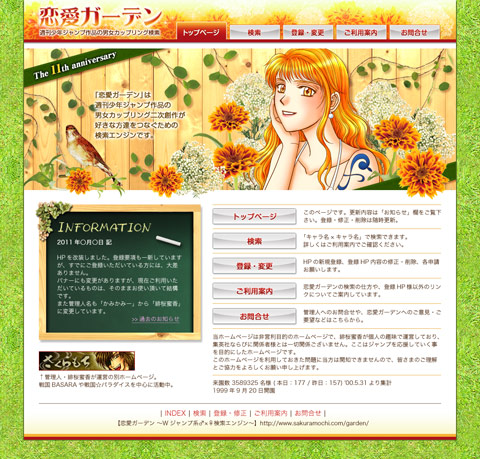 遅れまくっている恋愛ガーデンの改装ですが、ようやくトップページのデザインができました。